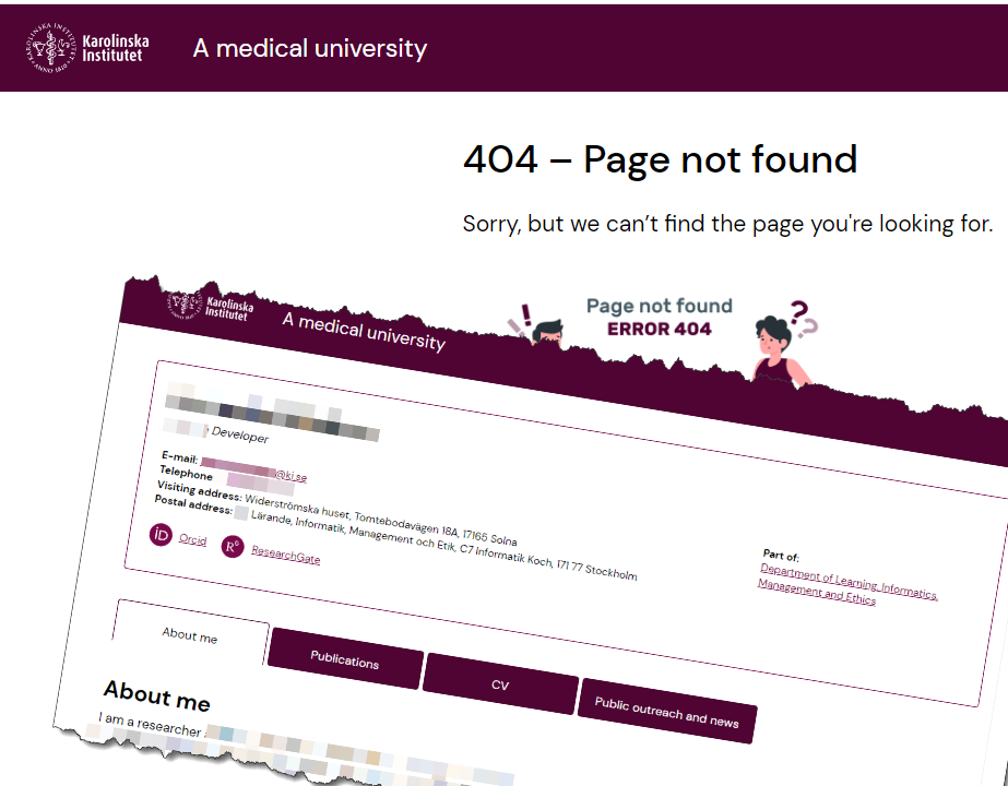 Efter mina frågor försvinner en av personerna bakom bolaget från KI:s hemsida. Men när jag skickar ut ett inlägg på Twitter att profilen var borttagen kommer den tillbaka igen.