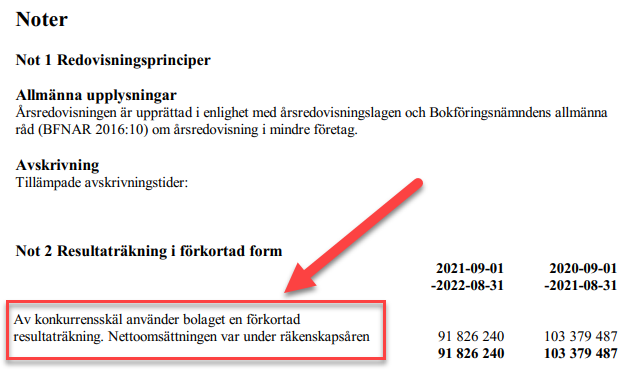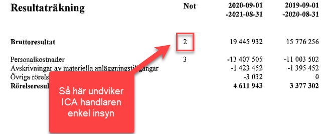 Det syns hos flera ICA-handlare i deras årsredovisningar och vissa har till och med skrivit en text "Av konkurrensskäl använder bolaget en förkortad resultaträkning". Se nedan för ett sådant exempel.