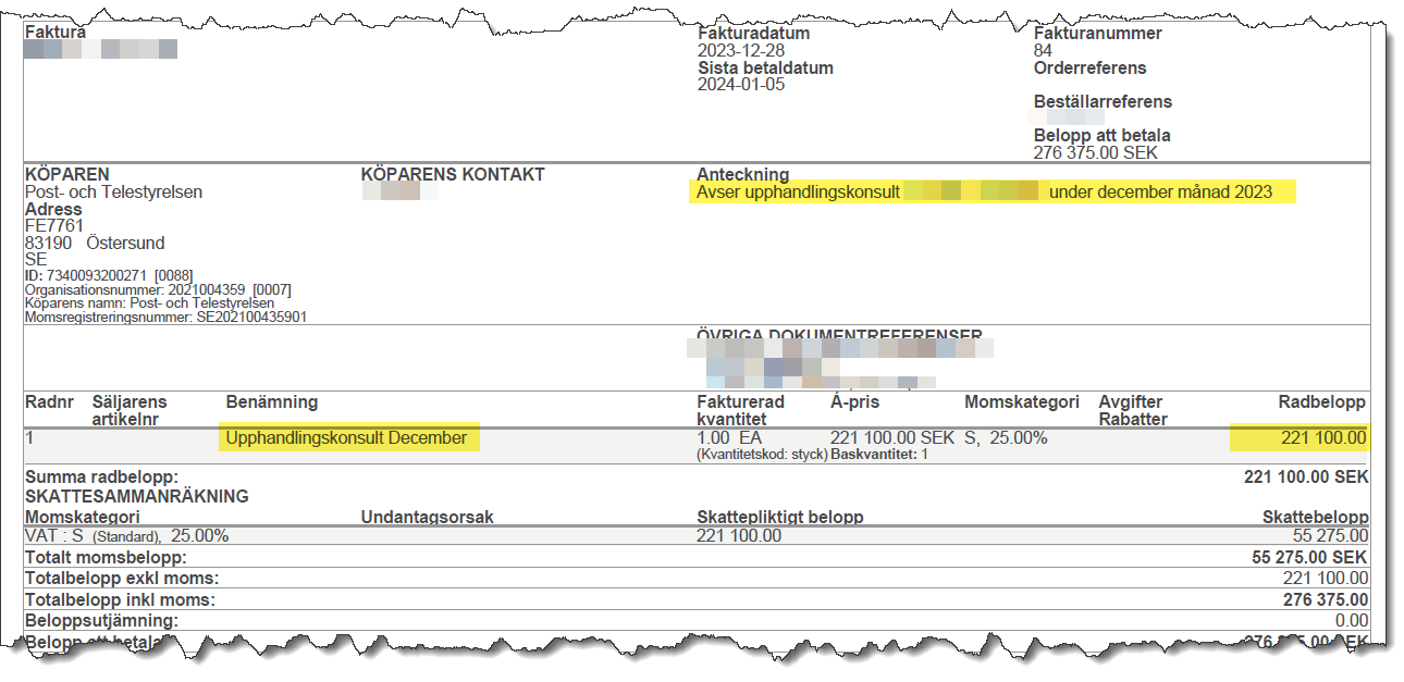 Fakturan från kompisbolaget har texten "Upphandlingskonsult December" men upphandlingskonsulten beskriver varför den är så stor.