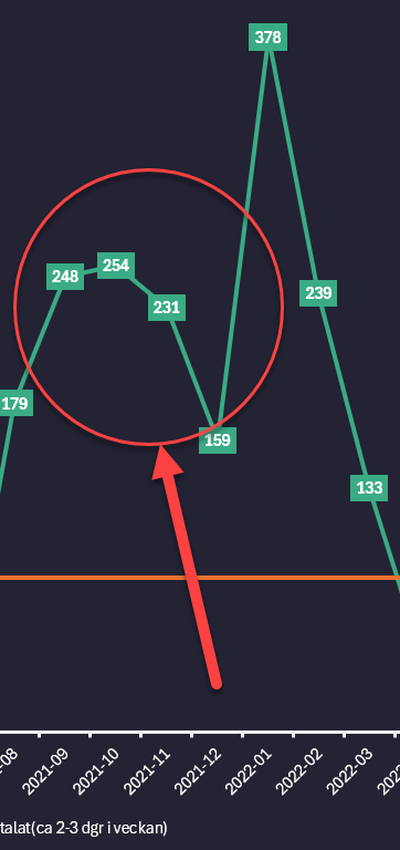 Under tidsperioden september - december 2021 ökar konsultens fakturor från 179 timmar i augusti till 248 i september, 254 i oktober och 231 i november för att sedan minska under julen men i januari 2022 faktureras 378 timmar för uppdraget.